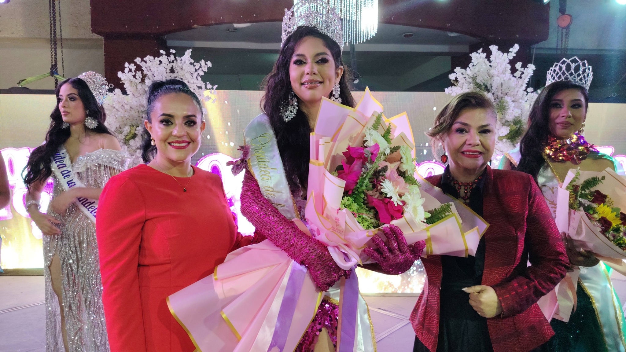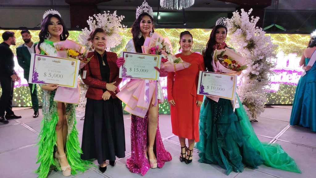 En un ambiente lleno de fiesta y color, Hermione Ivonne Ramos Peรฑa es coronada como Orquรญdea de la Candelaria 2026 por la Presidenta Municipal Eva Elia Guzmรกn y la Presidenta Honoraria del DIF Municipal, Marcela Mercado Baidรณn.