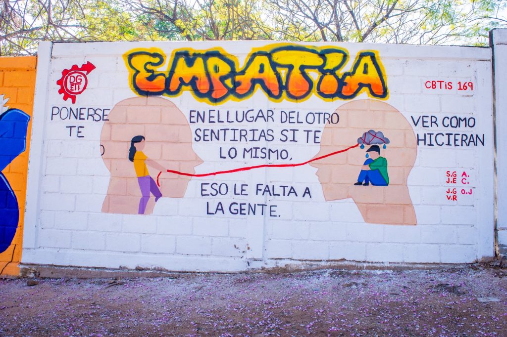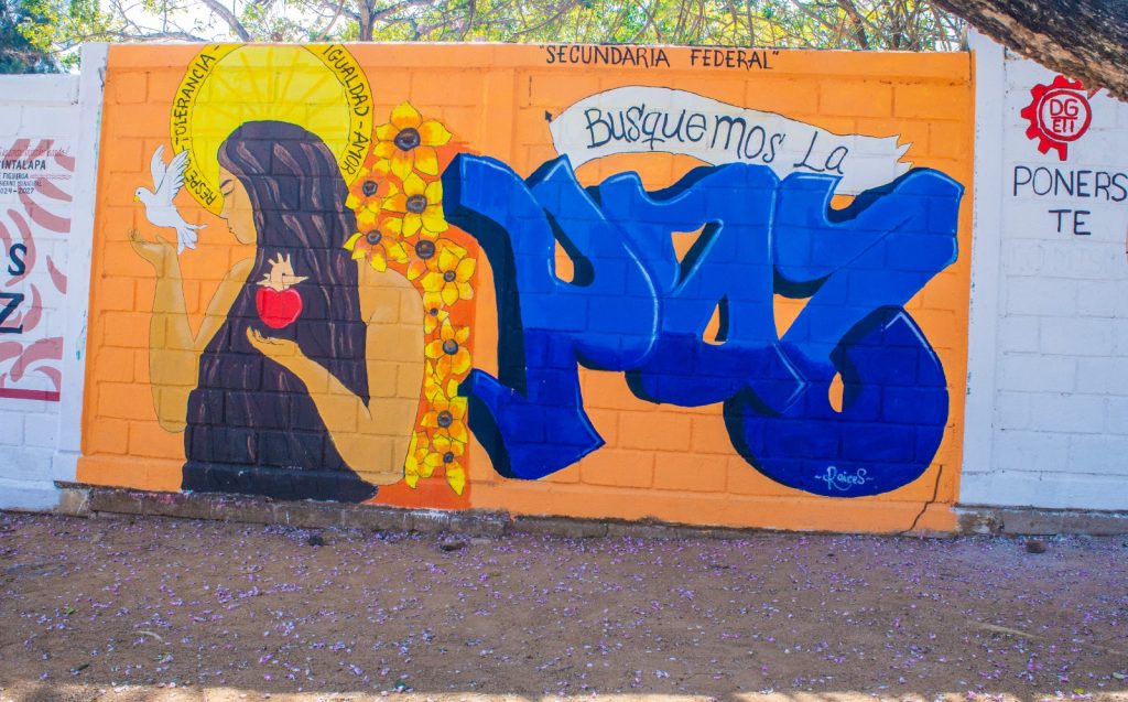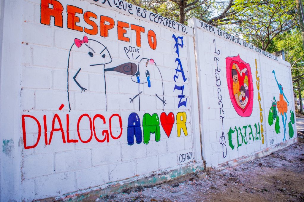 A la par, reconoció y agradeció también, la participación de los alumnos y docentes del COBACH 228, del CBTIS 169, del CBTA 24, en esta jornada por la paz, en la que las instituciones participantes, diseñaron y pintaron muros con mensajes dirigidos a la conciencia y al corazón de las juventudes y de la ciudadanía en general.