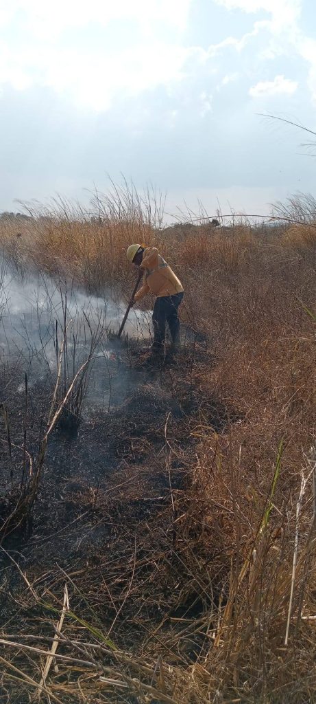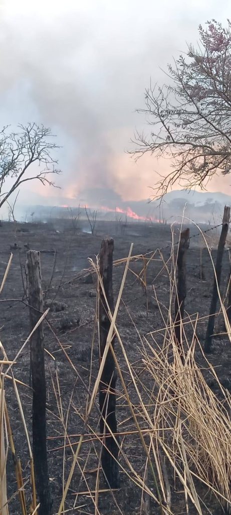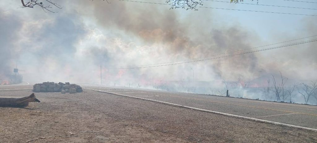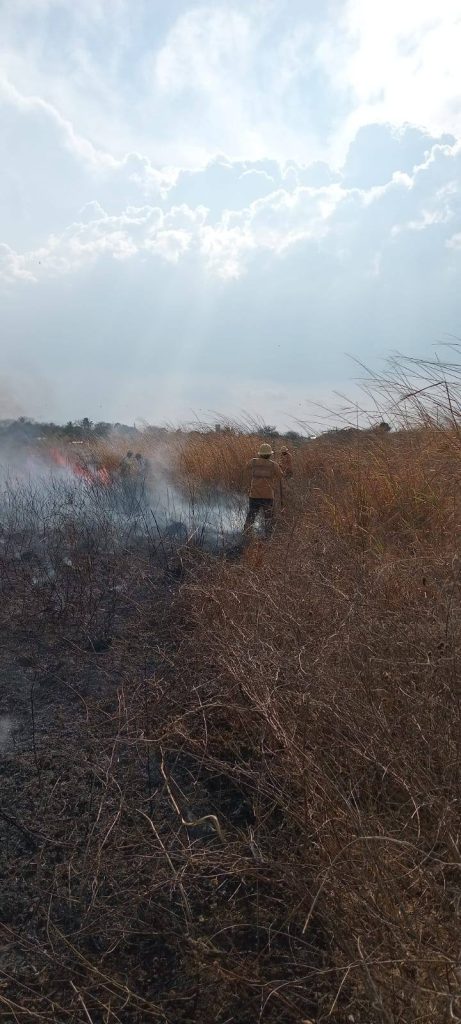 El primer siniestro fué reportado en el tramo carretero Nueva Liberación – El cero, donde elementos de esta brigada encontraron que el fuego había consumido pastizales en derecho de vía y que incluso amenazaba con provocar daños al interior de la comunidad.