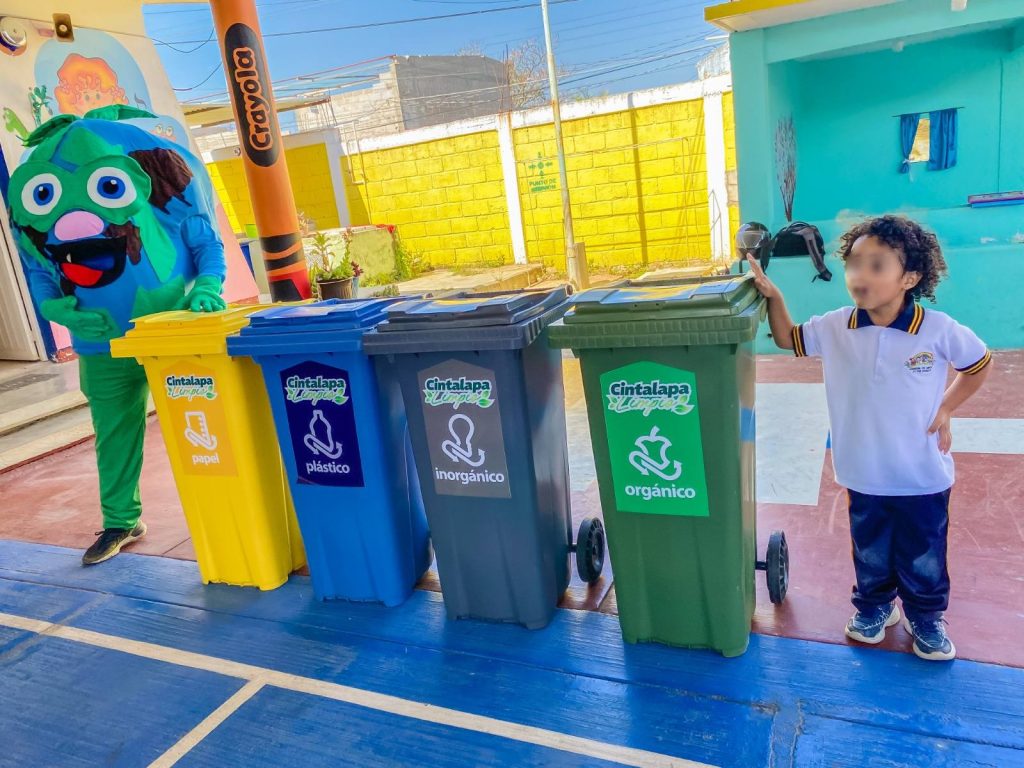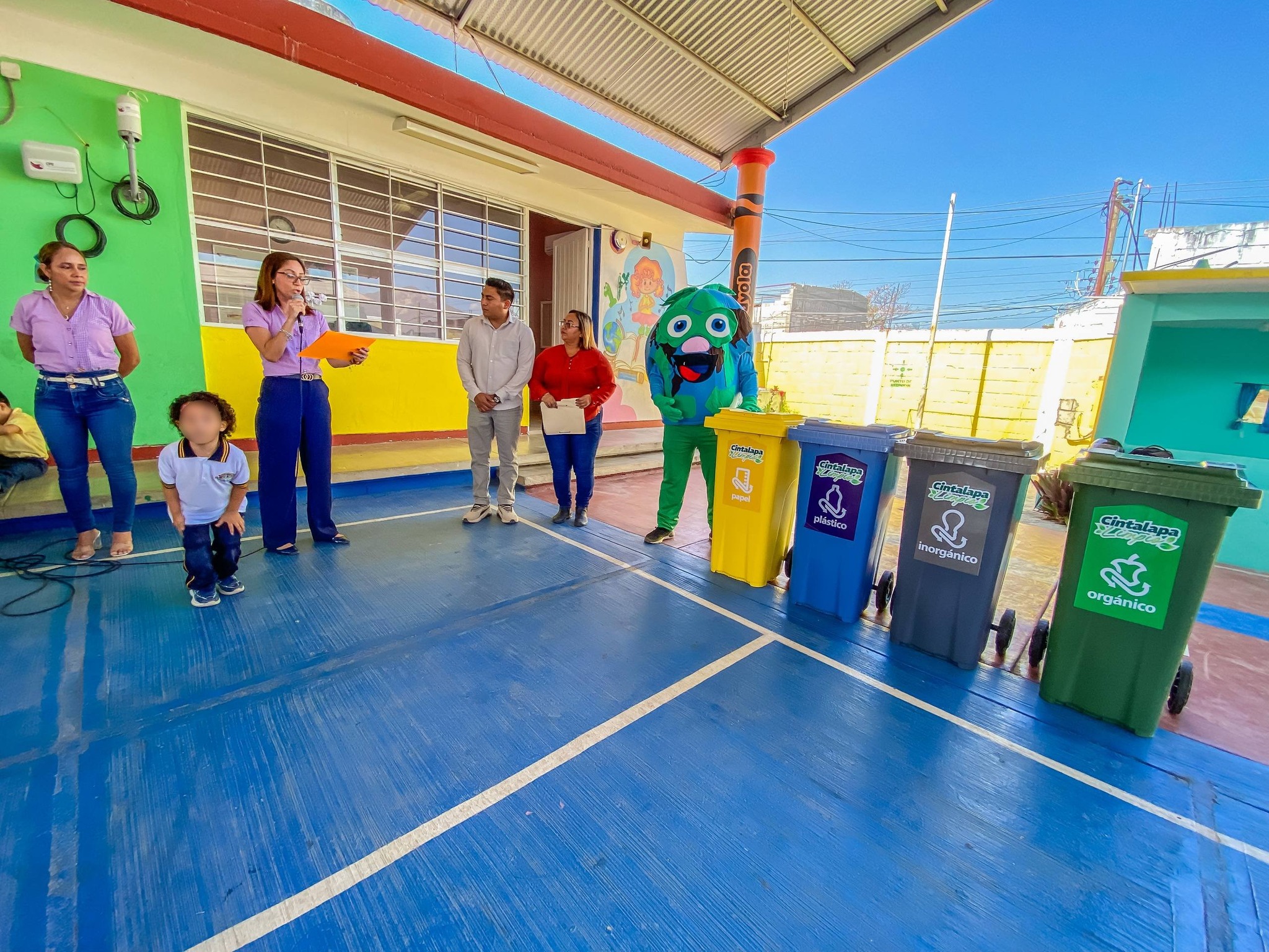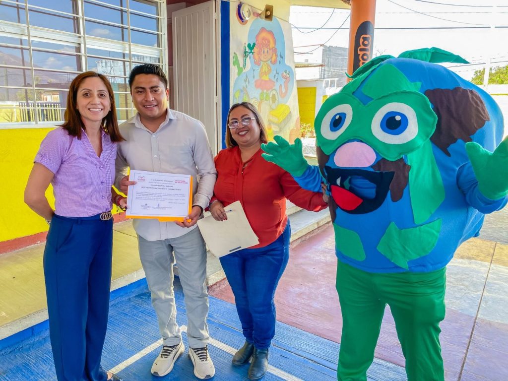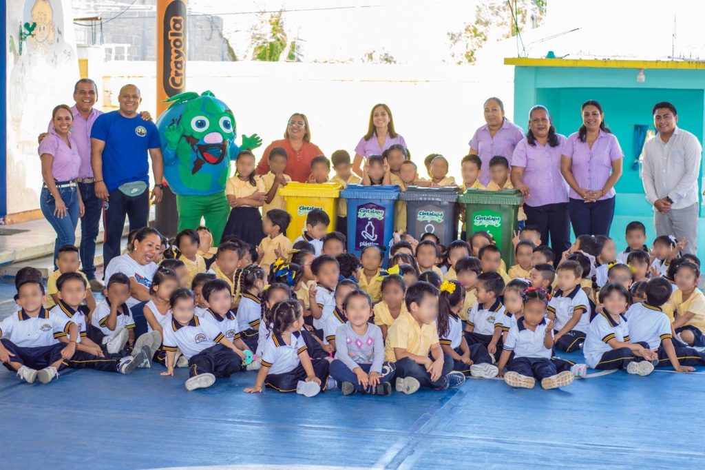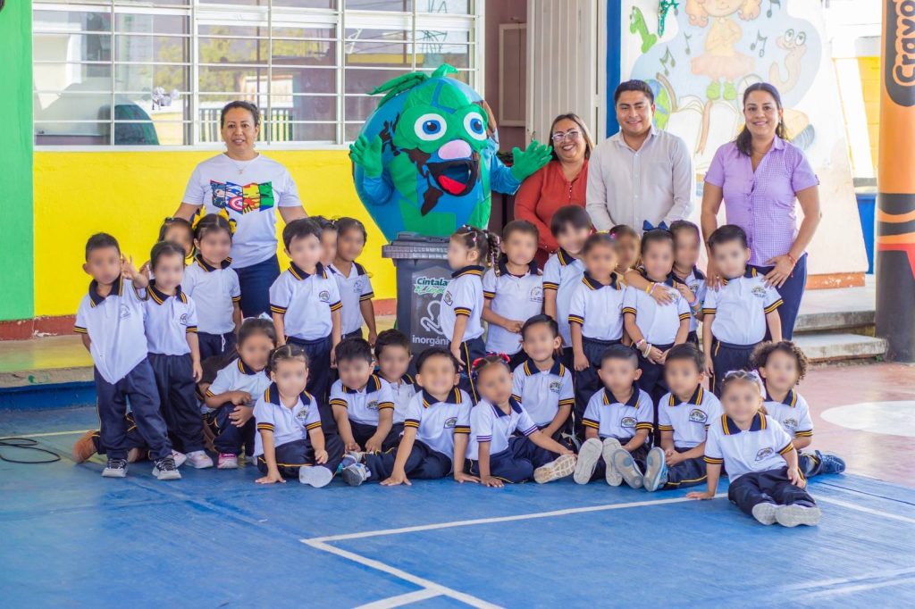 Como parte de las acciones para fortalecer la educación ambiental en el municipio, se realizó la entrega de contenedores para la correcta separación de residuos sólidos en el Jardín de Niños “21 de Marzo”.