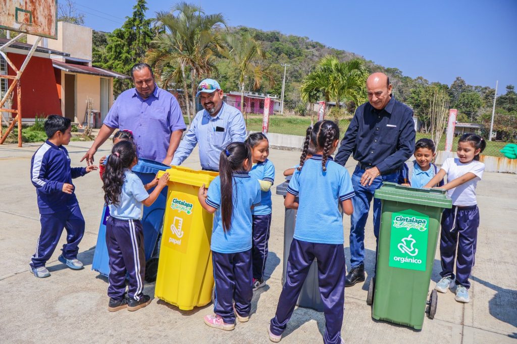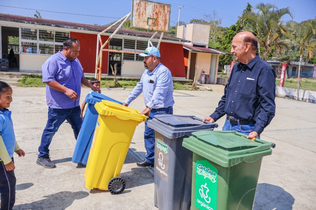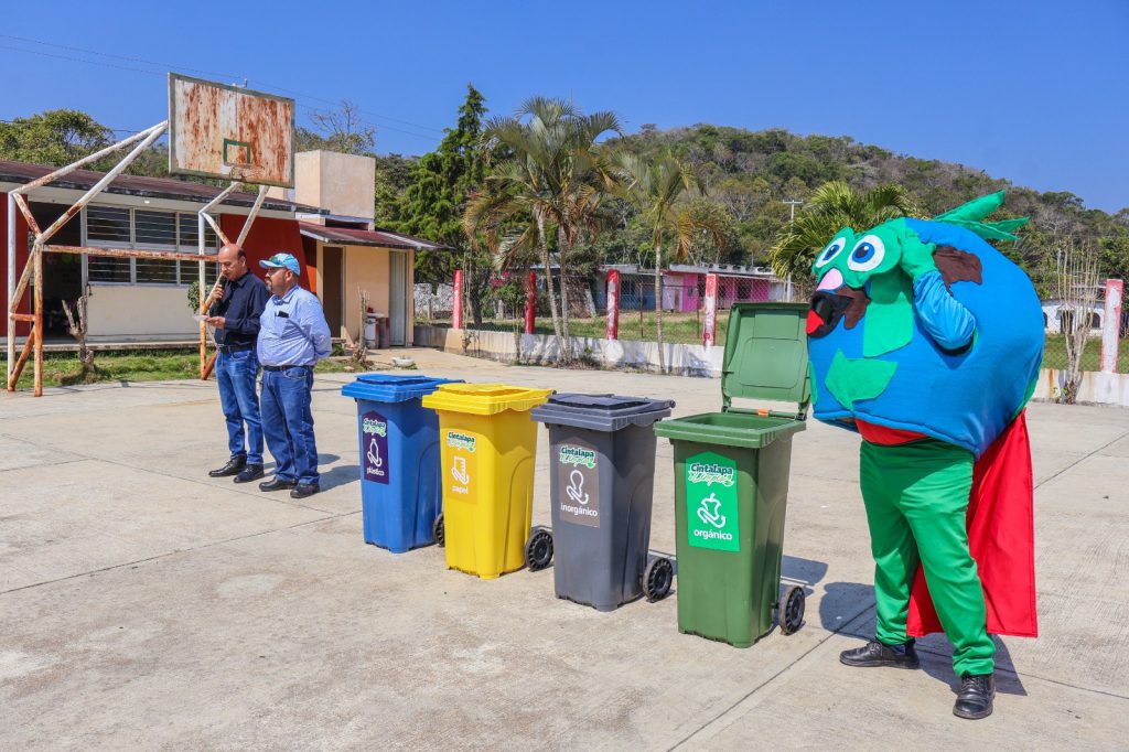 Como parte de las acciones del programa “Chiapas Limpio”, la administración municipal qué preside la Profesora Eva Elia Guzmán Gutiérrez, realizó la entrega me contenedores para la correcta separación y disposición de residuos sólidos a la Escuela Primaria Joaquín Miguel Gutiérrez de la Colonia La Florida.