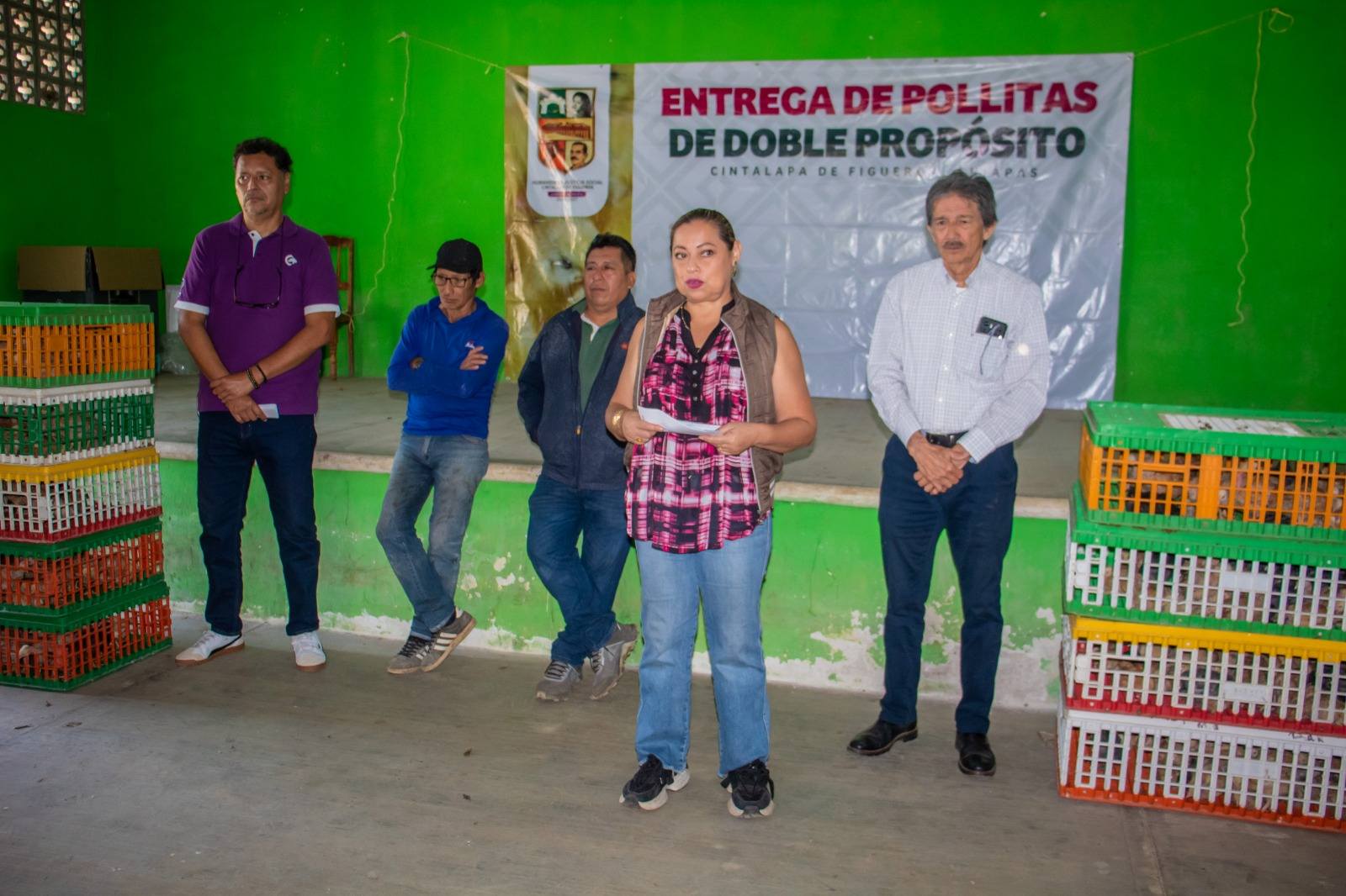 En cumplimiento al Programa de Impulso Social al Bienestar Familiar, la Dirección de Bienestar Municipal de Cintalapa, hizo entrega de pollitas doble propósito en la Colonia General Cárdenas.