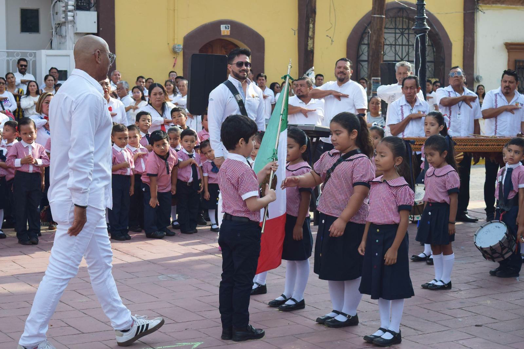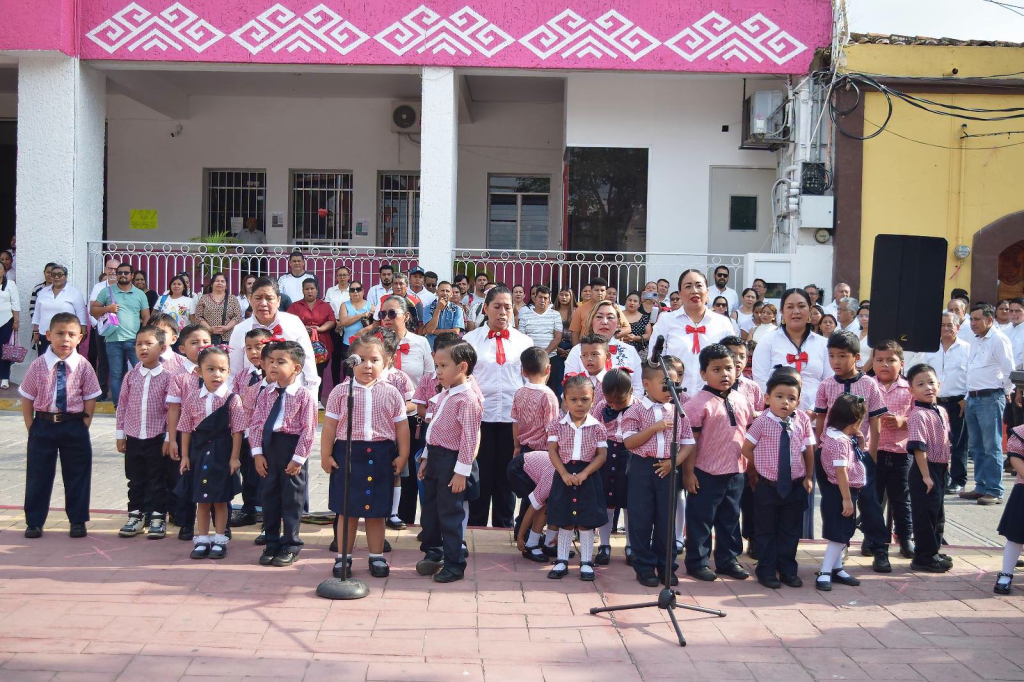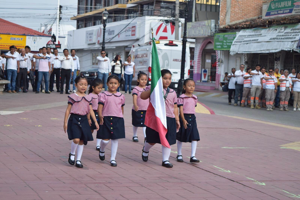 Con la participación de alumnos y personal Docente del Jardin de niños Emilio Rabasa Estebanell, la Presidenta Municipal Eva Elia Guzmán Gutiérrez, encabezó los honores a la bandera, acompañada de Regidores, Directores de área y personal del Ayuntamiento.