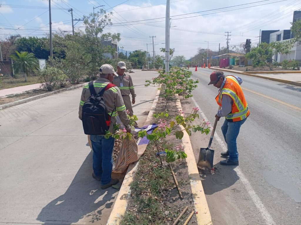 Personal de Servicios Públicos Municipales, realiza trabajos de limpieza y mantenimiento en el Boulevard Rodulfo Figueroa Esquinca.