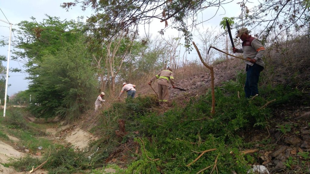 Mientras tanto, personal del área de Limpeza realizaron trabajos de limpieza y poda de maleza en la 3a avenida norte, concretamente, en el área conocida como el malecón, con el fin de mantener esta zona libre de basura, maleza y cacharros previo a la temporada de lluvias.