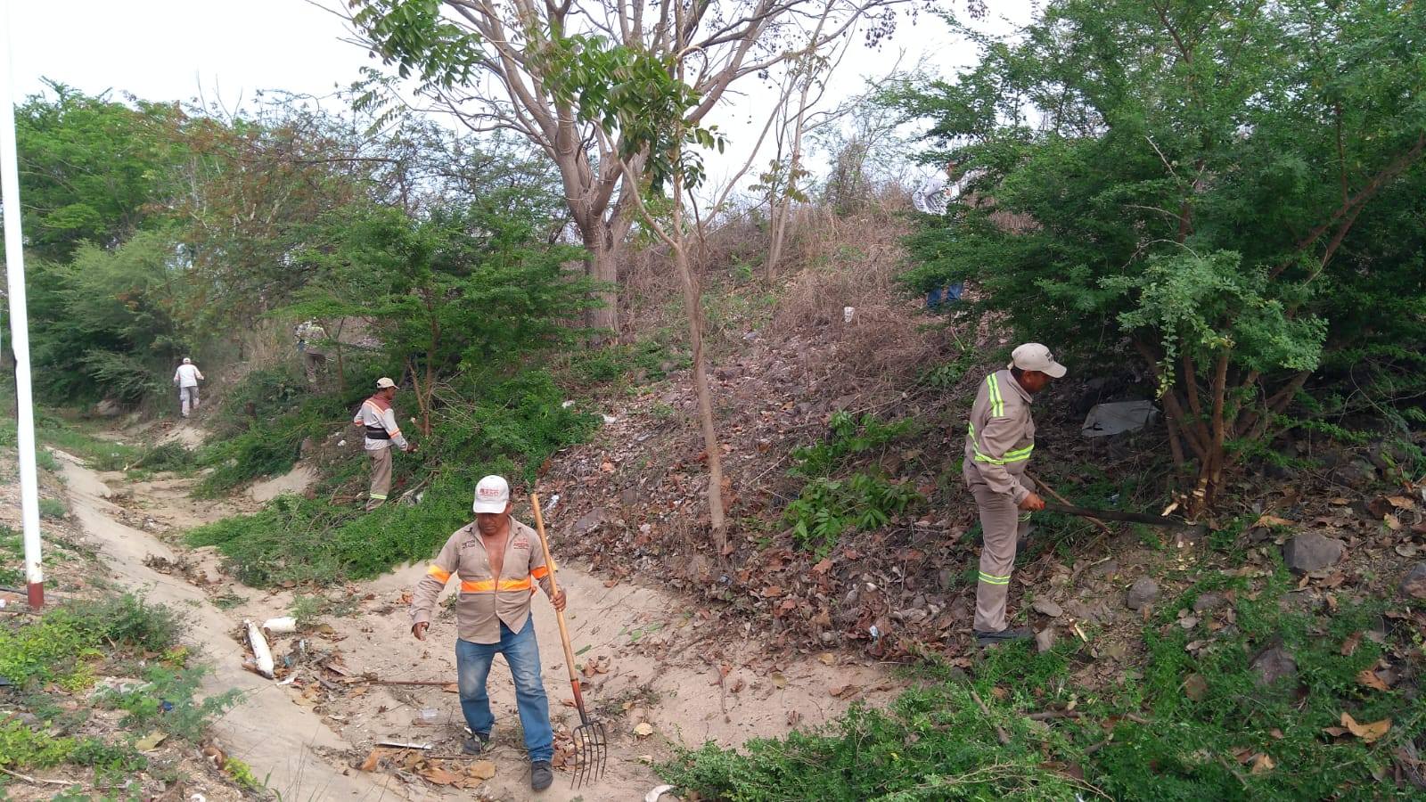 Mientras tanto, personal del área de Limpeza realizaron trabajos de limpieza y poda de maleza en la 3a avenida norte, concretamente, en el área conocida como el malecón, con el fin de mantener esta zona libre de basura, maleza y cacharros previo a la temporada de lluvias.