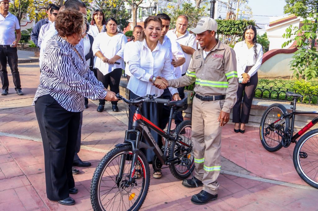 Al finalizar este acto cívico, se reconoció la labor que realiza el área de servicio públicos, y que en esta ocasión, la presidenta hizo entrega de Bicicletas a los “campaneros” del personal de limpia para que realicen de manera eficiente sus actividades.