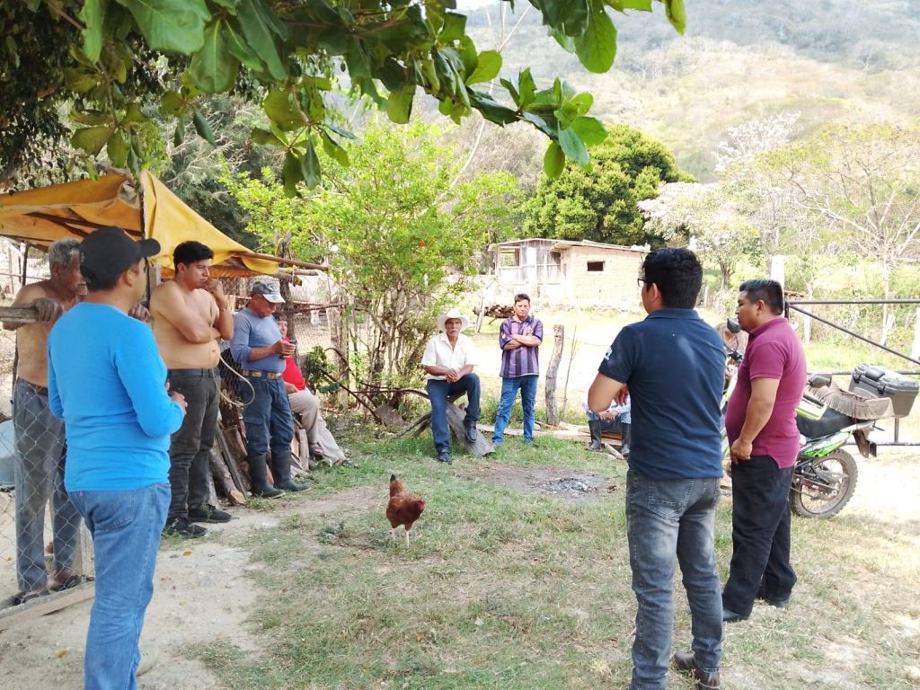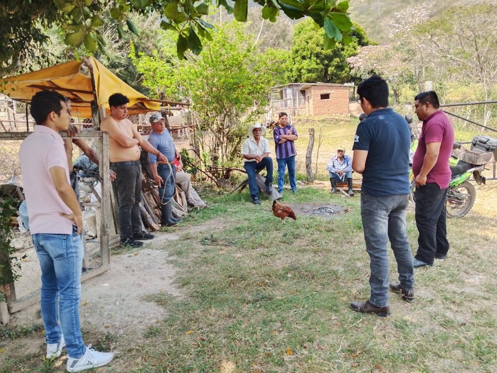 En esta ocasión se visitó a las rancherías Palomares y Pimienta Berlín en compañía de un médico veterinario de SENASICA (Servicio Nacional de Sanidad, Inocuidad y Calidad Agropecuaria) recordándoles la importancia de la vigilancia del hato ganadero, con el firme propósito de evitar enfermedades y erradicar la propagación del Gusano Barrenador.