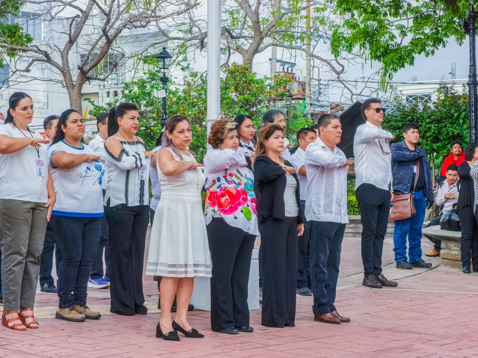 Con la participación de Regidores, Directores de las diversas áreas y personal del Ayuntamiento municipal se llevó a cabo los honores a la bandera encabezado por la Presidenta Municipal Eva Elia Guzmán Gutiérrez