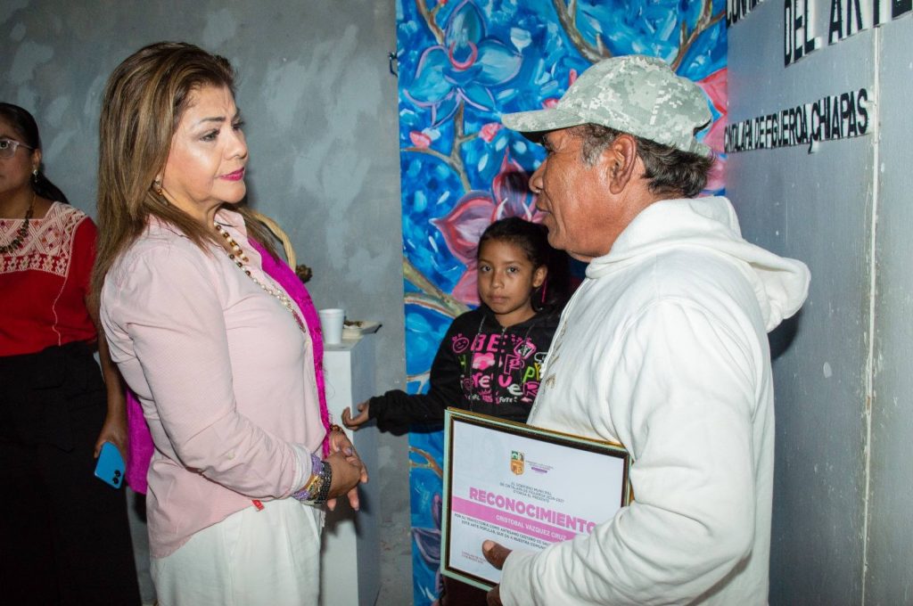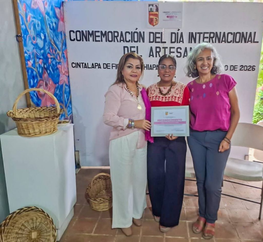 Este reconocimiento otorgado por la Presidenta Municipal Eva Elía Guzmán en compañía de la Regidora Blanca Elsa Palacios Burguete así como lo Directores de área Lic. Gabriela Burguete Escobar Dir. De Economía y Turismo, Lic. julio Pimentel Tort, Director de casa de la cultura Cintalapa, reconoció el trabajo de los talentosos artesanos.