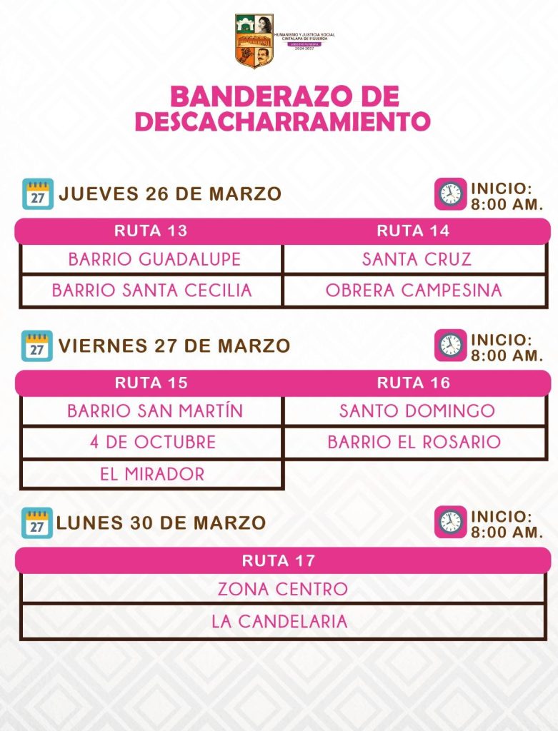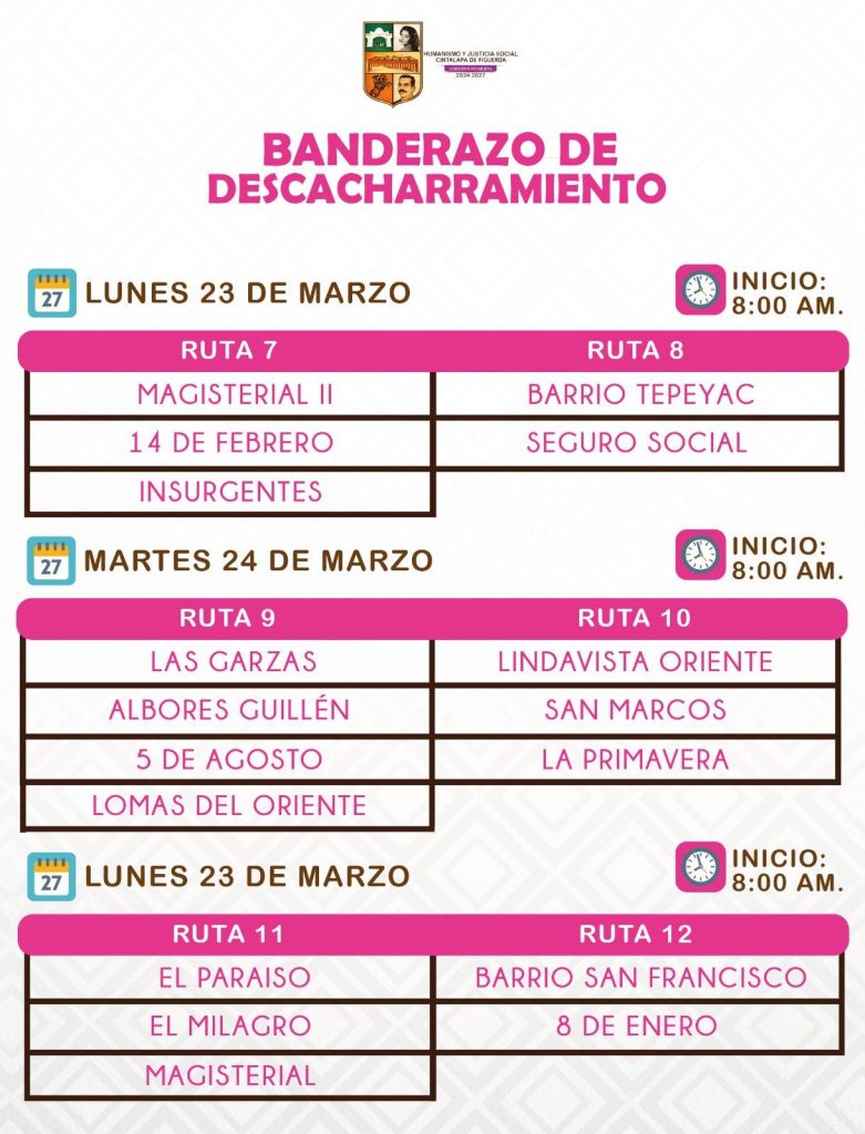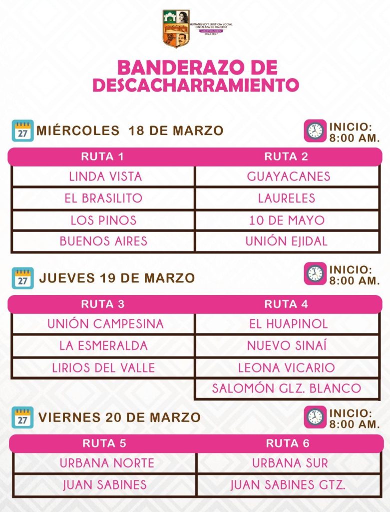 marzo 13, 2026 - In Comunicación Social‚ Sala de Prensa By admin123 Comment off #CINTALAPA || PRÓXIMA CAMPAÑA DE DESCACHARRAMIENTO Combatamos juntos el #Dengue, #Zica y #Chikungunya Previous AYUNTAMIENTO MUNICIPAL REALIZA REHABILITACIÓN DE LUMINARIAS DE DIFERENTES BARRIOS DE LA CIUDAD Next GOBIERNO DE CINTALAPA SUMA ESFUERZOS CON INDEPORTE PARA APOYAR DIVERSAS DISCIPLINAS EN CONUNIDADES INDÍGENAS