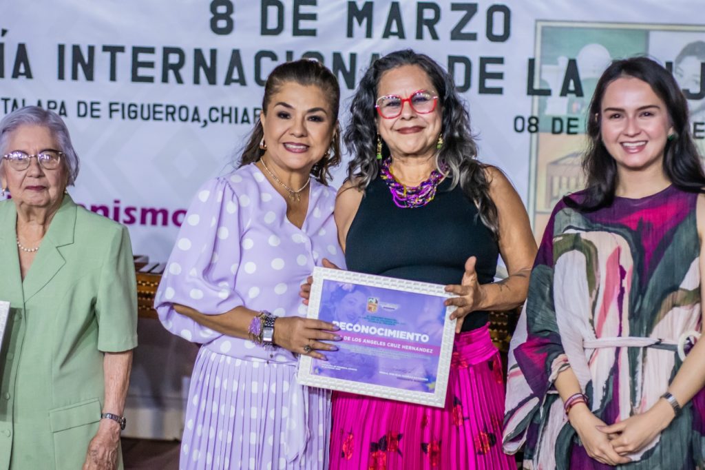En medio de aplausos por parte de las y los asistentes, Aurora Guzmán Serrano, María de los Ángeles Cruz Hernández, Rubí Espinosa Solís y Sandra De Los Santos Chandomí, recibieron, de mano de la Presidenta, este reconocimiento, por ser mujeres que inspiran, enseñan, lideran y nunca dejan de luchar por un entorno justo e igualitario.