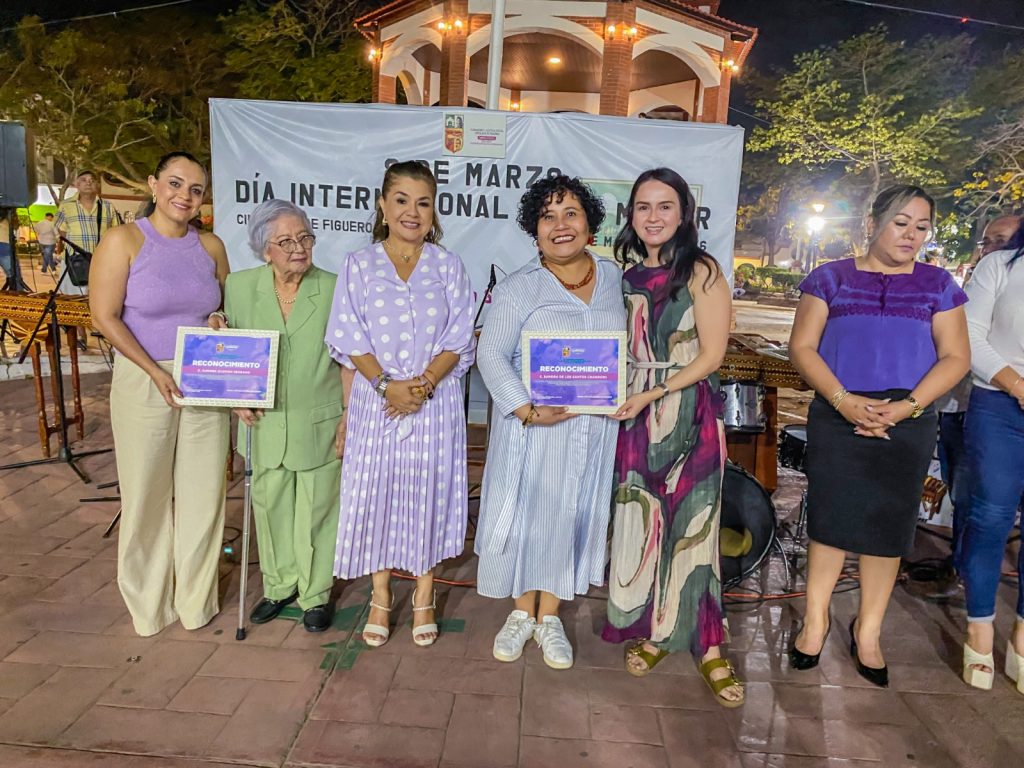 En este marco, la Presidenta Municipal, acompañada de la Diputada Federal, Flor de María Esponda Torres y de Regidoras y Regidores del Ayuntamiento, hizo entrega de reconocimientos a mujeres destacadas de nuestra localidad, que son muestra de tenacidad, esfuerzo, dedicación y valor.