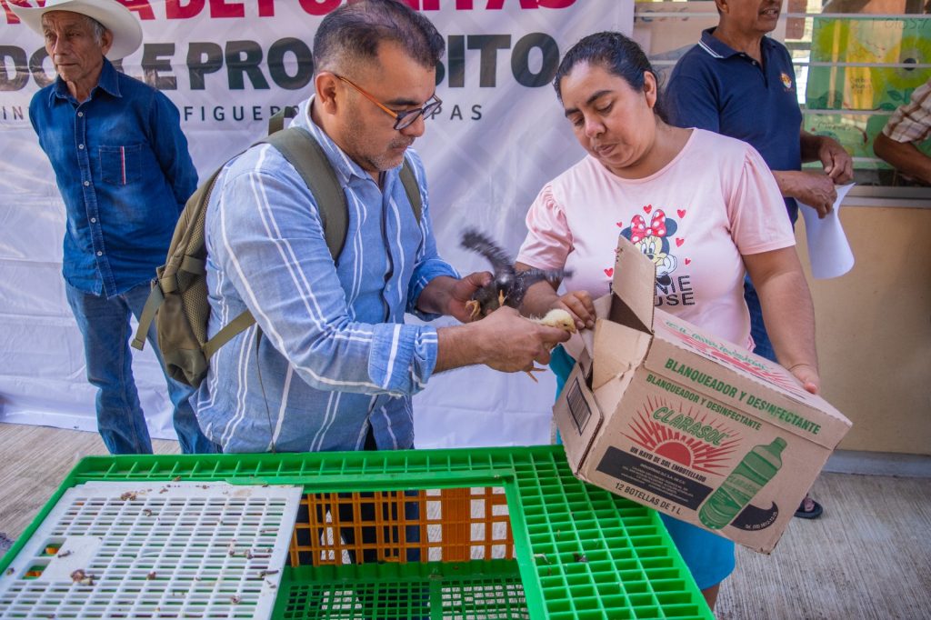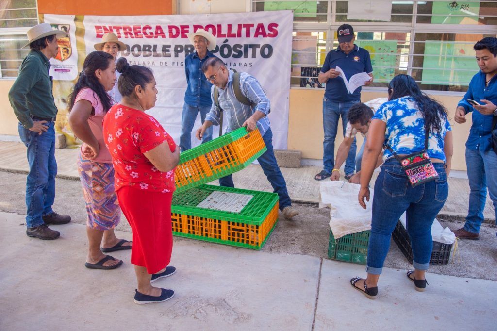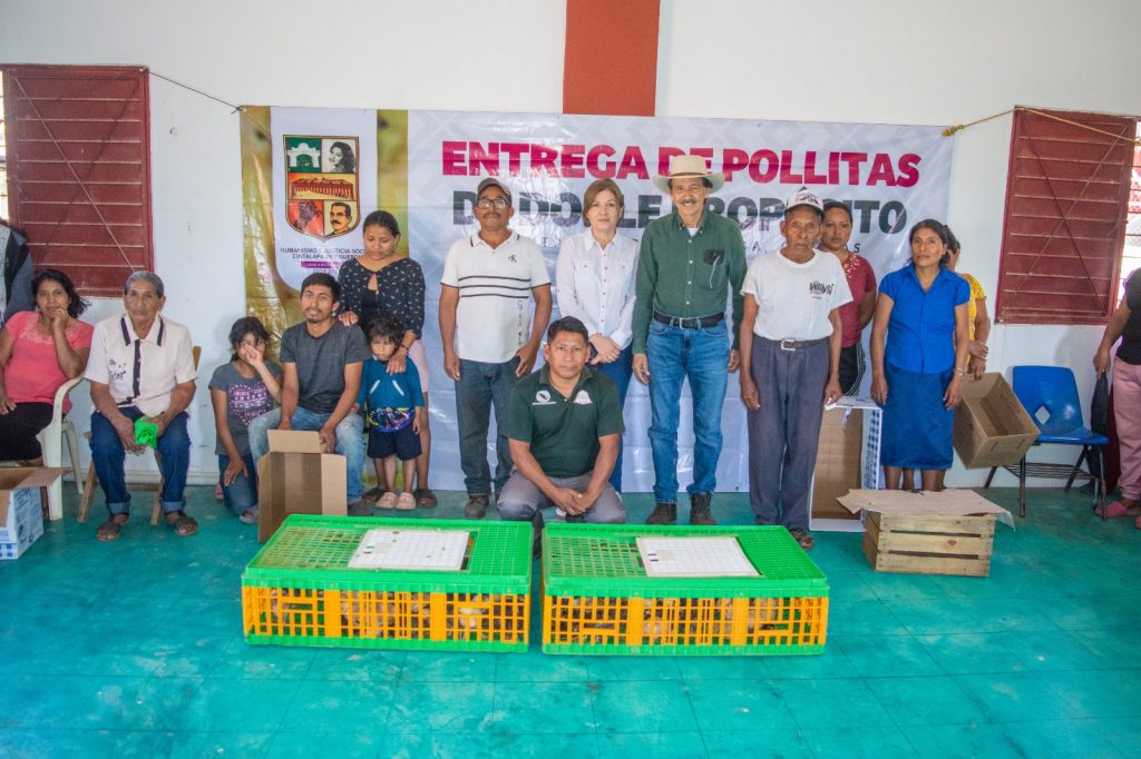 Con el firme compromiso de fortalecer la economía familiar y promover la autosuficiencia alimentaria, continúa la entrega de pollitas doble propósito en las diversas comunidades del Municipio.