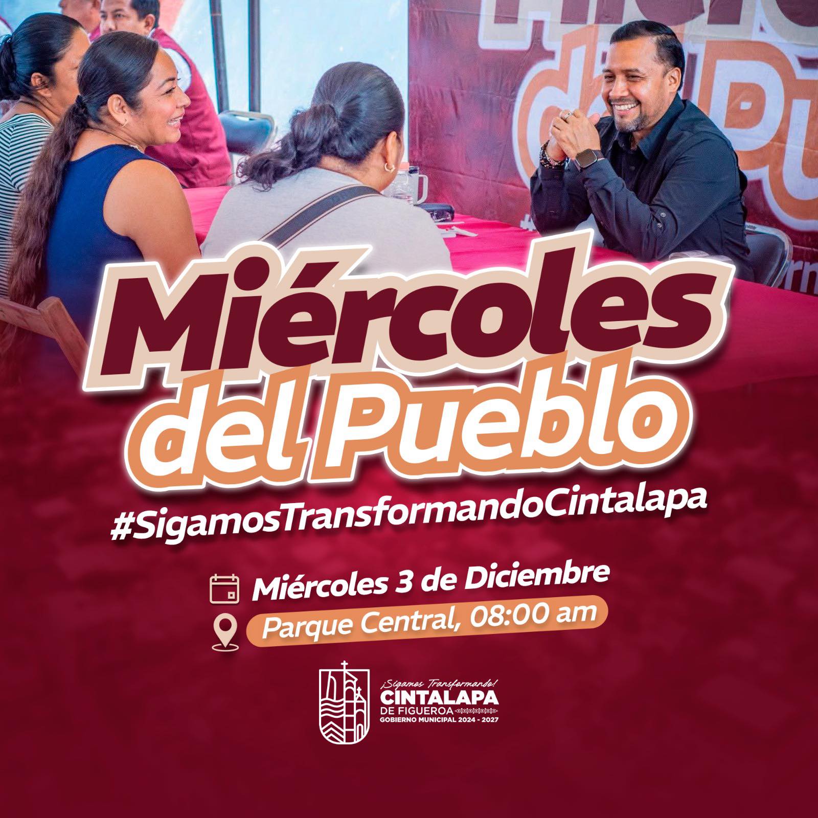 Amigas y amigos tenemos una cita este miércoles 3 de Diciembre; te esperamos en el Parque Central a partir de las 8:00 de la mañana, para dialogar y seguir construyendo juntos un mejor municipio.