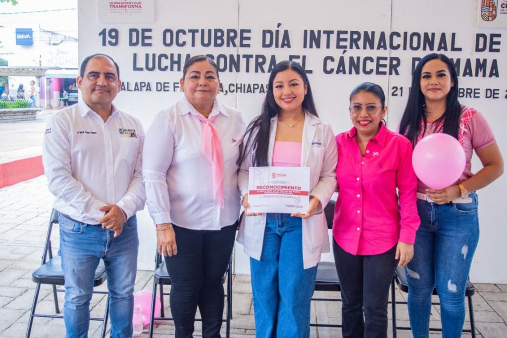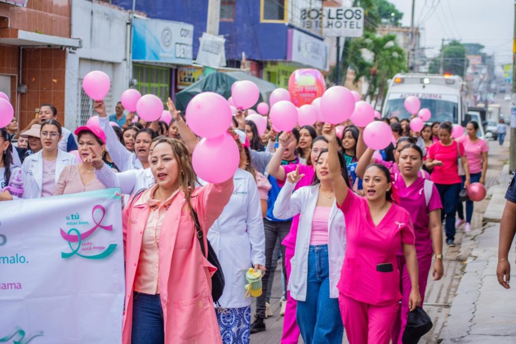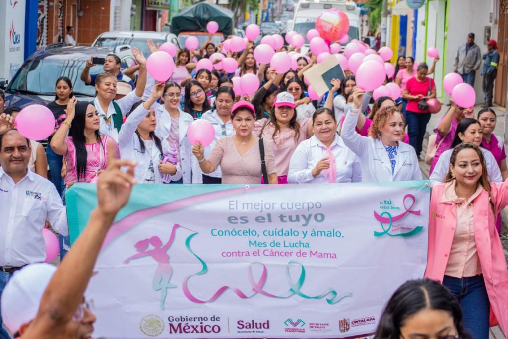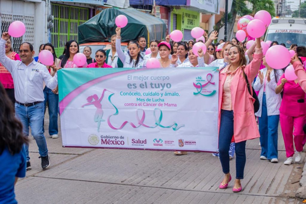 Cintalapa.– En el marco del Día Internacional de la Lucha contra el Cáncer de Mama, el H. Ayuntamiento de Cintalapa de Figueroa, encabezado por el Profe Neto, llevó a cabo una marcha conmemorativa y una feria de la salud con el objetivo de generar conciencia sobre la prevención y detección oportuna de esta enfermedad.