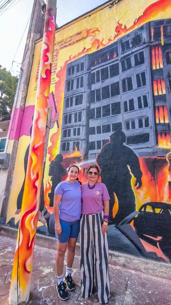 La artista plástica cintalapaneca, Dulce Roque, elaboró junto a otros destacados artistas locales, el mural “Origen y Destino, La Mujer en la Lucha por la Igualdad” qué rememora los lamentable hechos registrados el 8 de Marzo de 1908 en la fábrica de textiles de Nueva York en donde 129 mujeres perdieron la vida en medio de la lucha por los derechos de las mujeres.