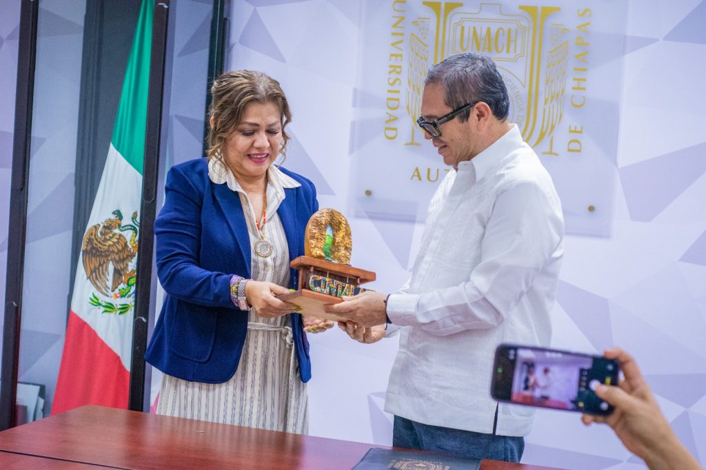 Con el objetivo de impulsar la educación en el municipio de Cintalapa, la presidenta municipal Eva Elia Guzmán Gutiérrez firmó un acuerdo de colaboración con el rector de la UNACH Dr. Oswaldo Chacón Rojas.