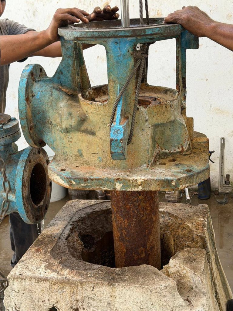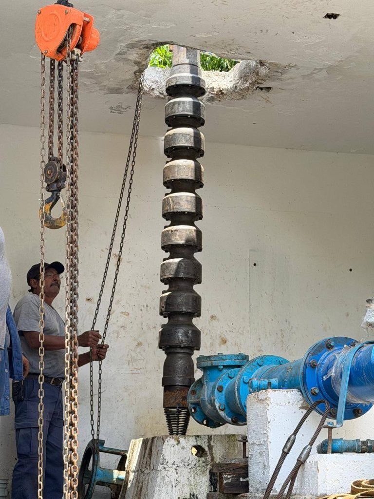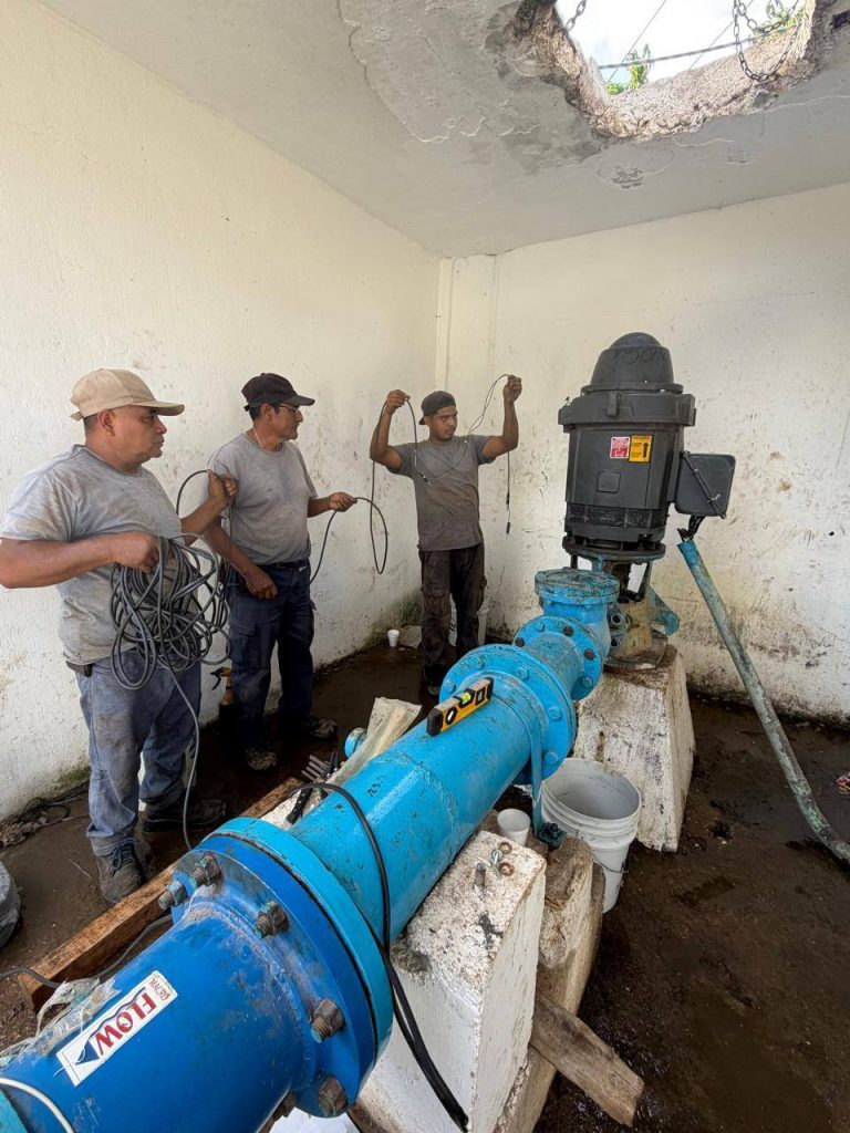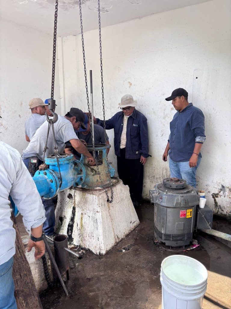 Personal del Sistema de Agua Potable y Alcantarillado Municipal (SAPAM) de Cintalapa, realizó la reparación e instalación de la bomba de distribución de agua potable del pozo número uno.